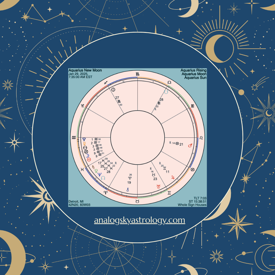 Powerful New Moon chart, Aquarius Rising, connecting this equally to the individual as the collective.