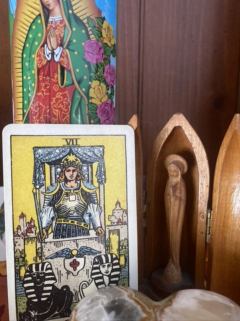 This charioteer is ready to explore the future and perhaps the past, always remaining connected to the divine and also feeling protected from what is ahead. He knows he is moving into unchartered territory, and yet he holds strong and confident in faith.