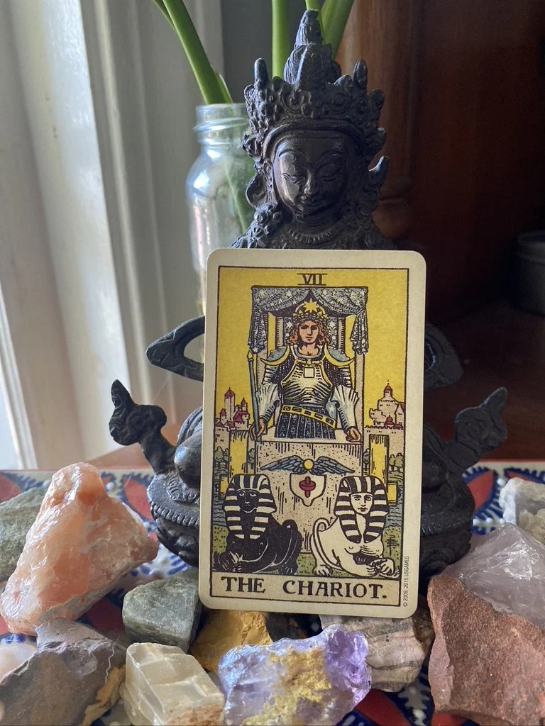 Two tarot cards that that invoke this transit are the Tower and the Chariot. The tower and its divine Uranain lighting bolts are invoking sudden and swift change, but change that beckons from above. The Chariot seeks to reorient our individuality.