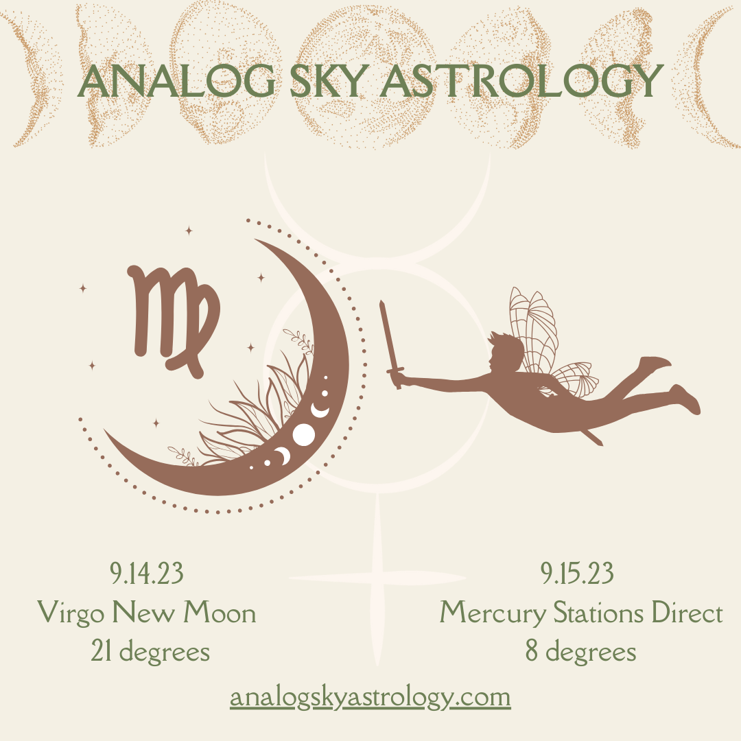Currently Mercury in Virgo is retrograde, it began its perceived backward motion August 23 with stationing effects beginning days prior as it hovered around 21 degrees in the sign of the maiden. It will turn direct on September 15th, one day after the New Moon in Virgo.